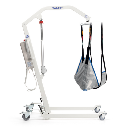 Grúa Falcon de traslado para personas mayores con indicador de batería y arnés incluido de hasta 150kg