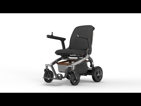 La silla eléctrica inteligente ION presenta una estructura ligera de aluminio y magnesio, ofreciendo ligereza y resistencia. Con solo 62 cm de ancho, es ideal para movilidad en interiores, y su batería de 20 Ah permite hasta 23 km de autonomía en exteriores, sorteando pendientes de hasta 9 °. Su plegado manual ocupa un volumen compacto de 44 × 62 × 70 cm. El joystick ergonómico incorpora una pantalla TFT de 4,5 cm y asistente de voz para un manejo intuitivo, complementado con control remoto vía app por Bluetooth®. Disponible en turquesa y gris antracita.