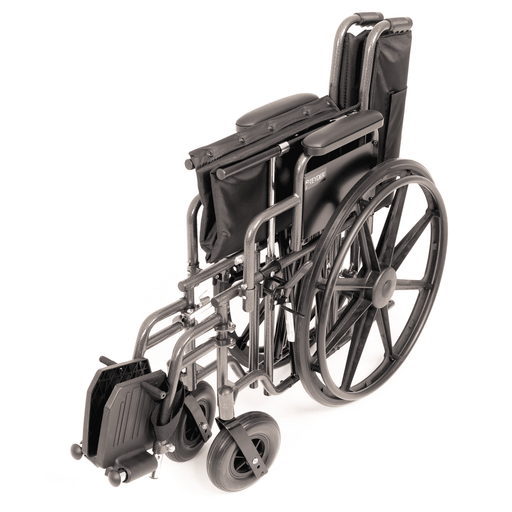 View full detailsSilla de ruedas con respaldo reclinable y reposapiés elevables con tapizado de Nylon